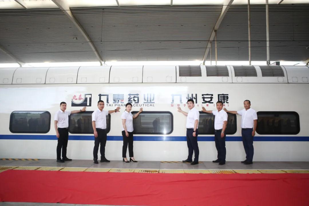 正值九泰藥業(yè)創(chuàng)建七十周年之際,由我公司冠名的車身帶有“九泰藥業(yè),九州安康”字樣的高鐵動車組列車在哈爾濱西站舉行了隆重的開行首發(fā)儀式。公司總經理李百洋為儀式進行了剪彩。此次列車從哈爾濱西出發(fā)開往北京方向。以黑龍江為核心,途徑15座城市以上,全面覆蓋東三省,輻射全國,日均客流量數以萬計!高鐵是中國速度的代名詞,是“中國名片”之一,具有極高的品牌塑造能力,這次依托高鐵冠名列車獨特的流動性傳播優(yōu)勢可以大大提升品牌形象,全面開啟營造“高鐵勢能”的營銷新路。此次冠名結合品牌天幕、語音報站,車身廣告等媒體形式,為“九泰藥業(yè)集團”營造良好的傳播氛圍,能夠全面展現(xiàn)集團品牌實力,釋放更強大的品牌優(yōu)勢。讓我們心懷希望,永不言敗,懷揣理想,共同期待。愿“九泰藥業(yè)”號,把播種綠色希望的美好祝福送到千家萬戶!